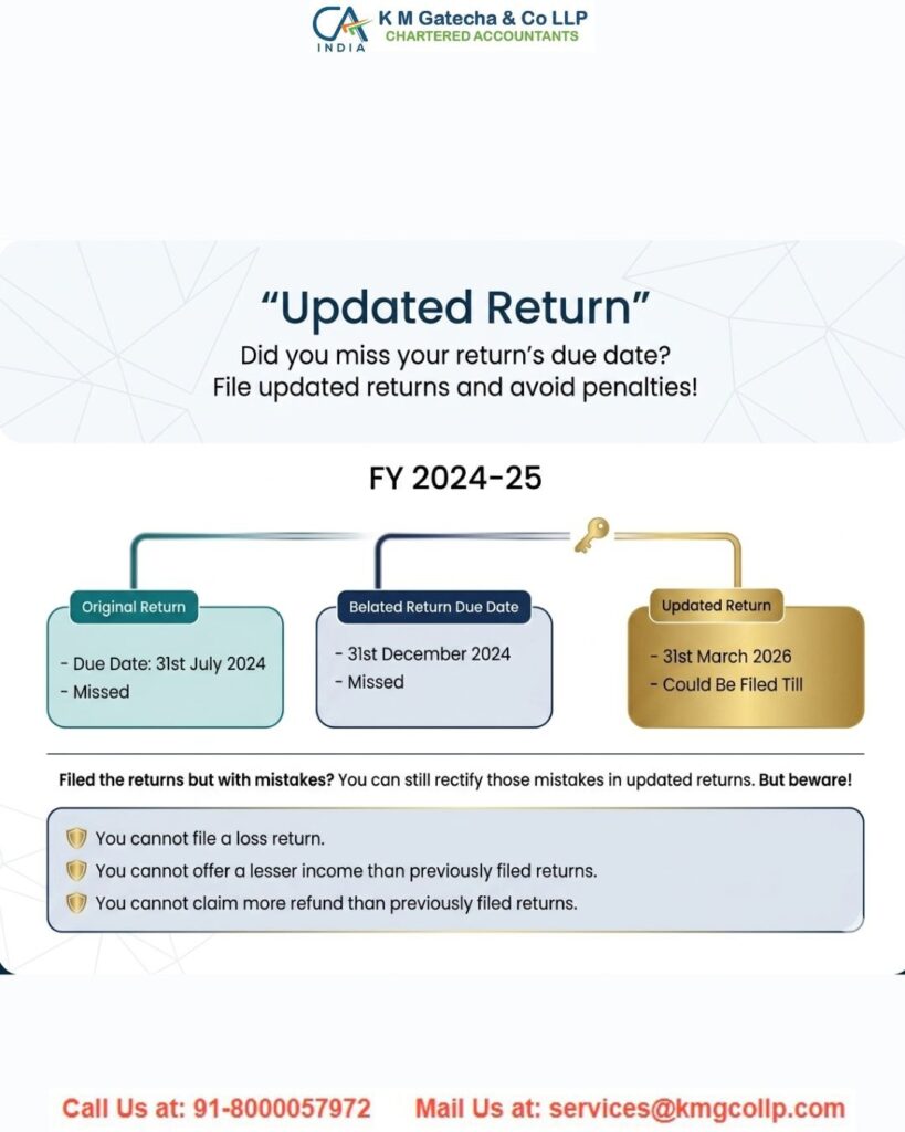An updated return is a recently introduced type of Income Tax Return that gives taxpayers an opportunity to correct errors in previously filed returns. It also allows individuals who did not file their return earlier to submit one later. Taxpayers must follow specified timelines when filing an updated return and are required to pay any additional tax, interest, and penalties applicable for delayed filing.
